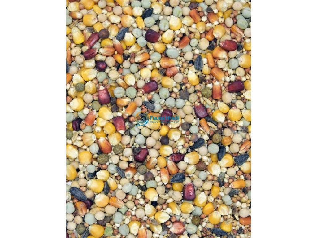 Žlutá kukuřice , žlutý hrášek, červený čirok. dari, zelený hrášek , žluté proso, pohanka. červená drobná kukuřice, drobná kukuřice Burgundská , peliuška, kardy, ječmen , rýže pady, slunečnice